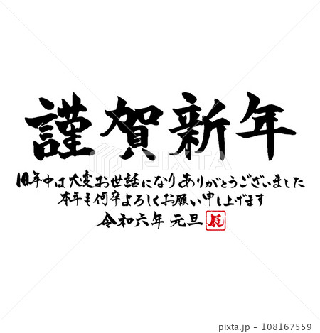 令和六年年賀状用筆文字テンプレート 謹賀新年 祝詞あり 横向き文字のイラスト素材108167559- PIXTA。