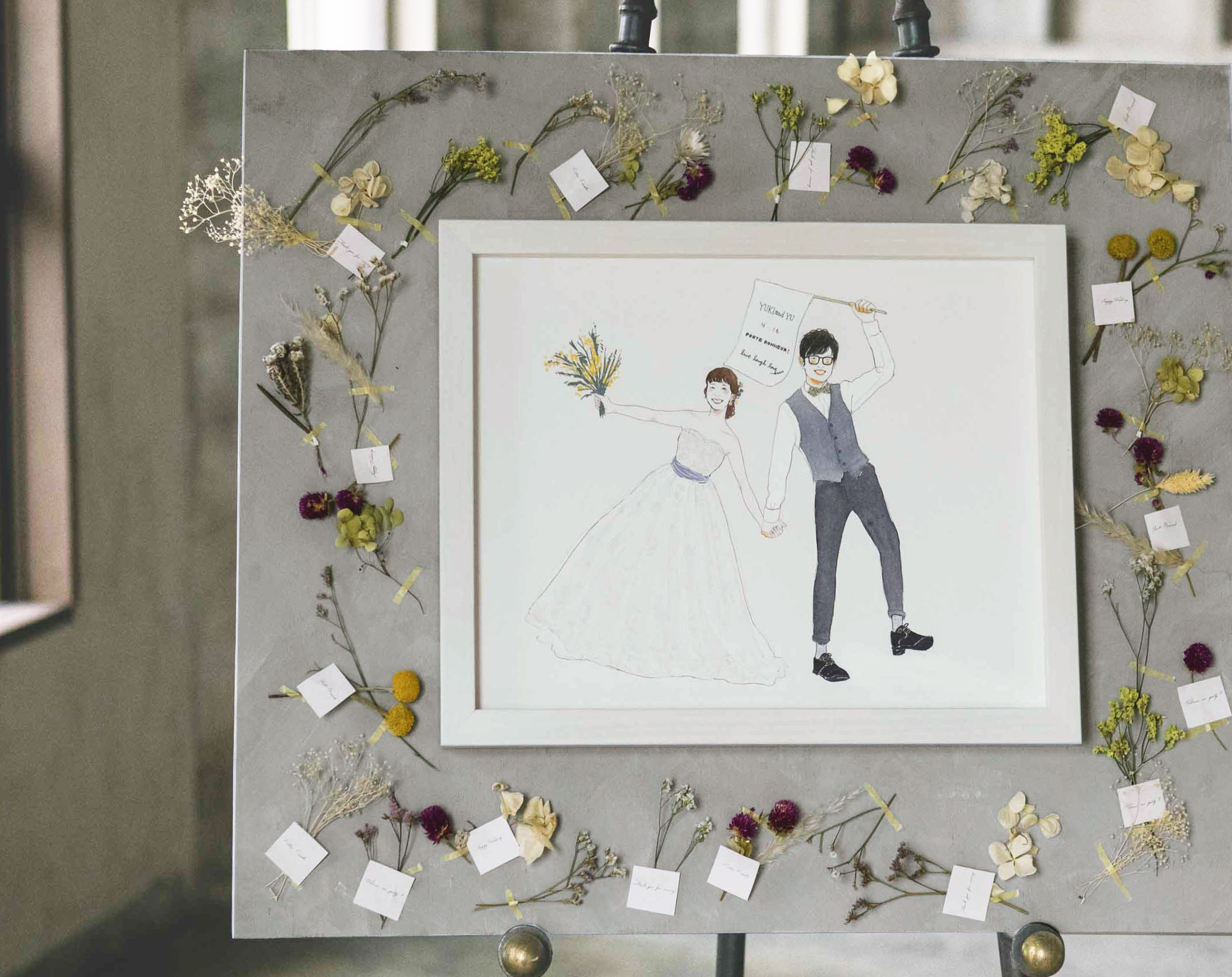 結婚式のウェルカムボード 似顔絵 イラストのフリー素材イラストイメージ。