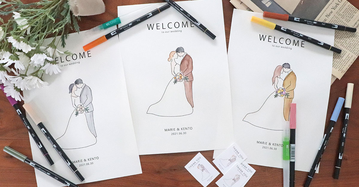 001-イラストウェルカムボード』結婚式DIY誰でもできるテンプレート-無料で使えます - narunico なるにこ ウェディングプランナ。