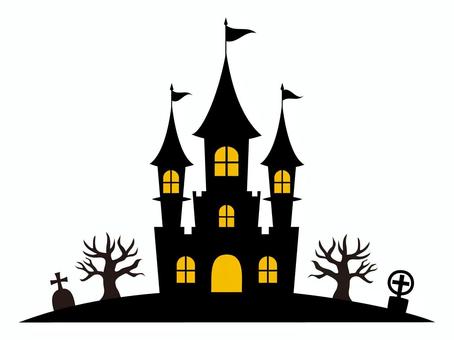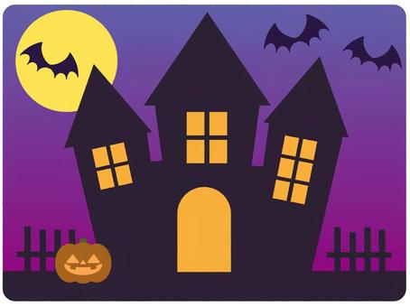 コピースペース ハロウィン 窓 洋館のイラスト素材。