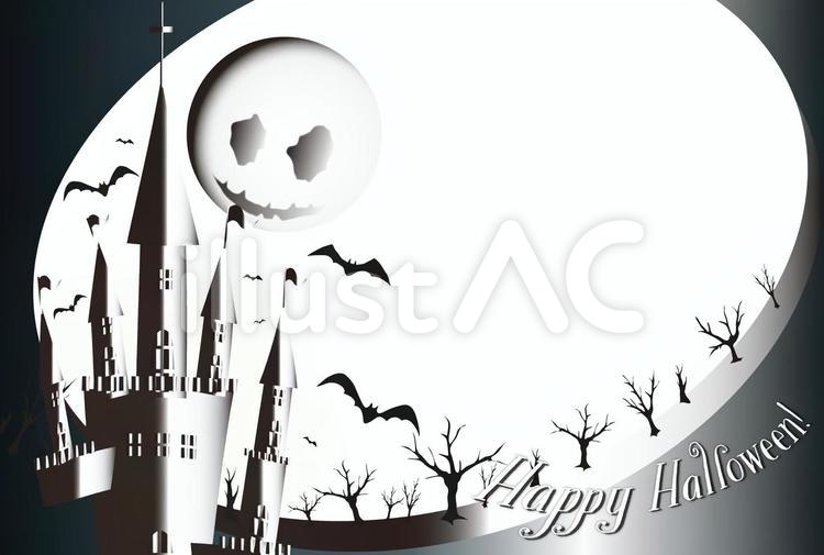 ハロウィン161 白黒な楕円窓フレームイラスト - No: 23114656無料イラスト・フリー素材なら「イラストAC」。