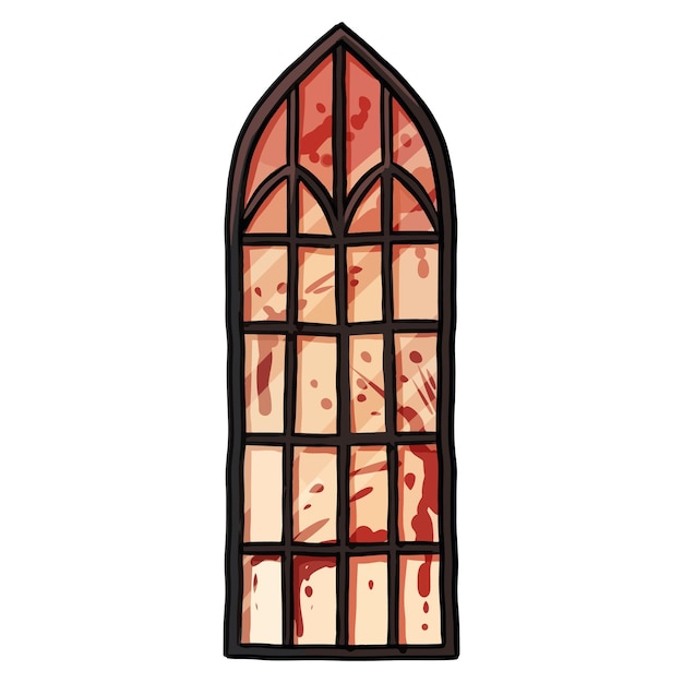ゴシック様式の窓の落書き吸血鬼のステンド グラスの窓の概念ハロウィン不気味な手描きの要素ステッカー ラベルのベクトル グラフィック イラスト プリントレーザー カット ファイルひな形Premiumベクトル素材。