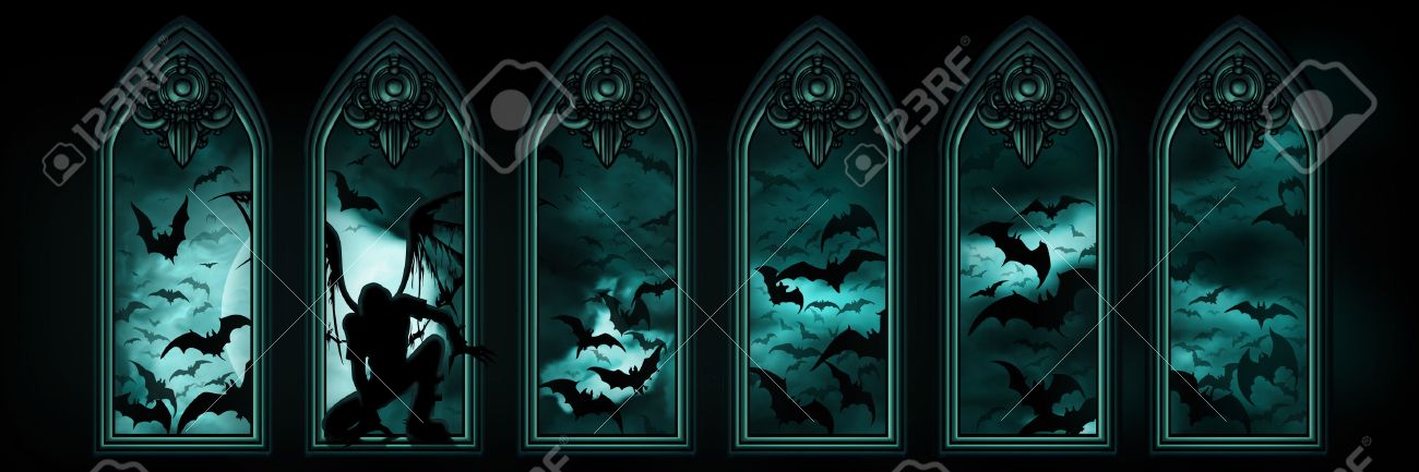 ハロウィンの窓枠フレーム無料フリーイラスト - イラストストック。