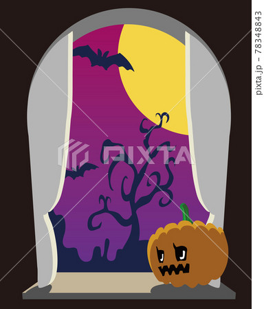 ハロウィンの夜に窓から外を見るジャック・オー・ランタンのイラスト素材78348843- PIXTA。