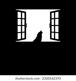 窓に吠える狼。ドラマチック、不気味、ホラー、怖い、ミステリー、不気味なイラスト。映画やハロウィンポスター要素のホラー映画のためのイラスト。ベクター イラスト」のベクター画像素材 ロイヤリティフリー2320162193Shutterstock。