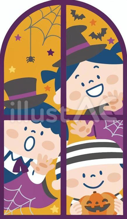 ハロウィンの日に窓から覗く子どもたちイラスト - No: 25601618無料イラスト・フリー素材なら「イラストAC」。