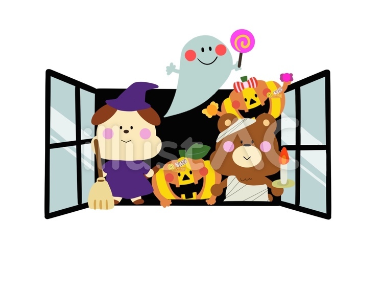 ハロウィンの日に窓からのぞくおばけとモンスターのイラスト素材107114373- PIXTA。