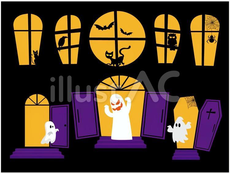 ハロウィン素材窓入口ドアイラスト - No: 22203555無料イラスト・フリー素材なら「イラストAC」。