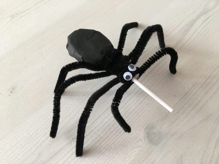 ハロウィンに棒つきのあめとモールで簡単!クモのキャンディお金をかけずに楽しく遊ぼう。