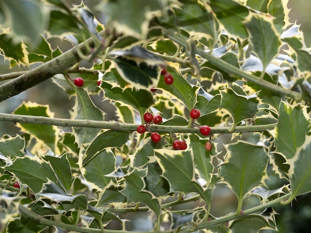 肉屋のほうきと赤い実のヤドリギ クリスマスPremium写真。