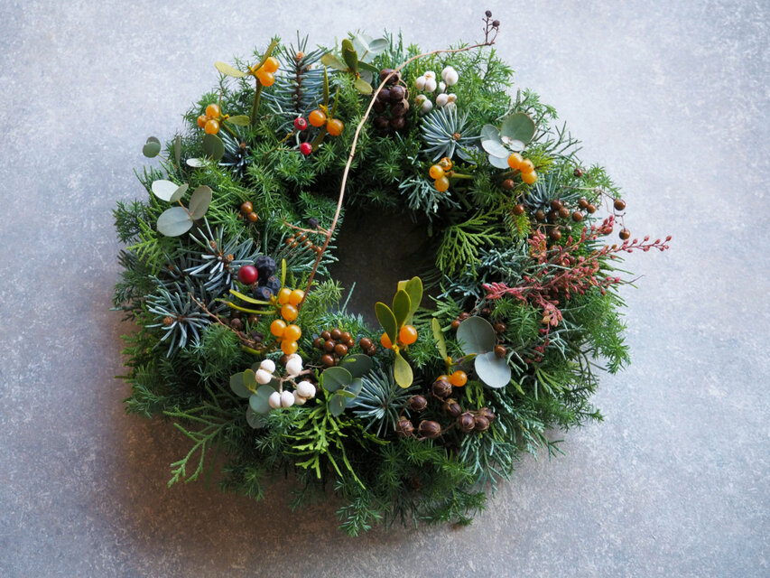○数量限定○ 冬のインテリア飾りセット ”プリザーブドフラワーとヤドリギのクリスマスリース ” 宿り木 飾り おしゃれ 多肉植物 berries 通販18483832Creema クリーマ。