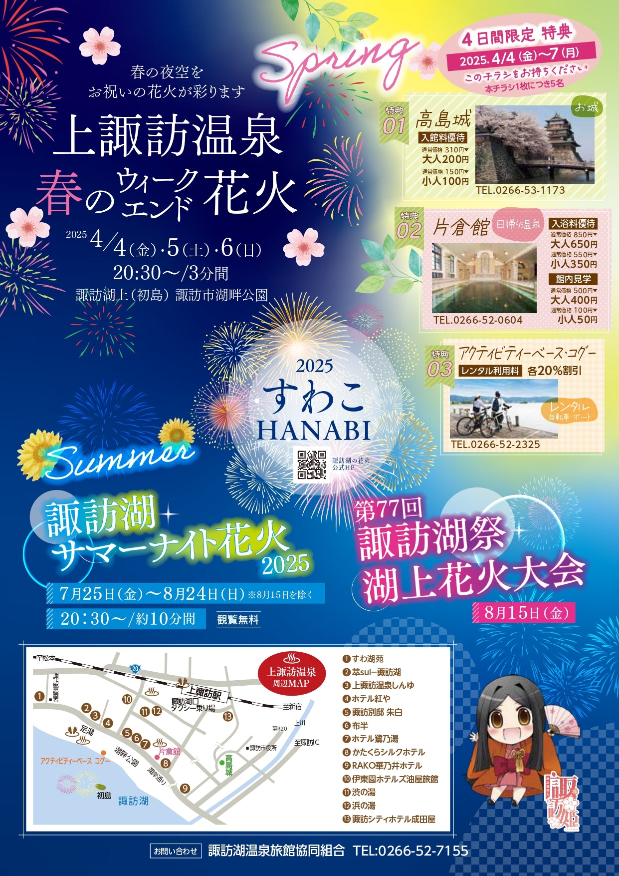 2025年4月4日~6日 上諏訪温泉 春のウィークエンド花火 ☆3 31更新上諏訪温泉旅館・ホテル検索 宿泊券購入なら諏訪湖温泉旅館協同組合。