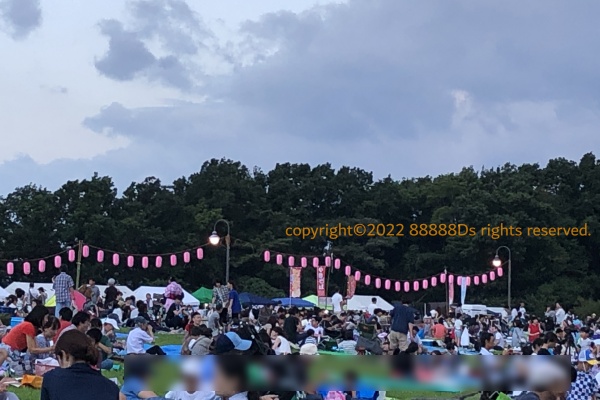 片倉つどいの森公園で花火を見る会 2023年7月29日紅琅羽珠豚 くろーばーすとーん。