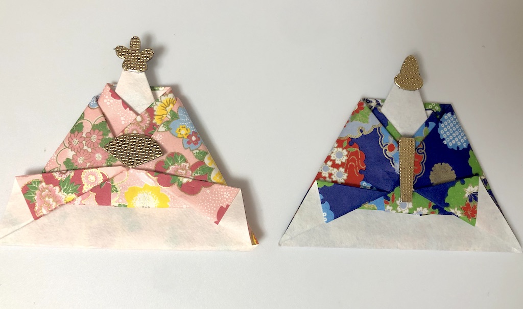 3月の折り紙。ひな祭りに簡単に子どもでもかわいい平面の雛人形の作り方。大人の高齢者の三月の手作り製作にも♪おりがみっこⅡ。