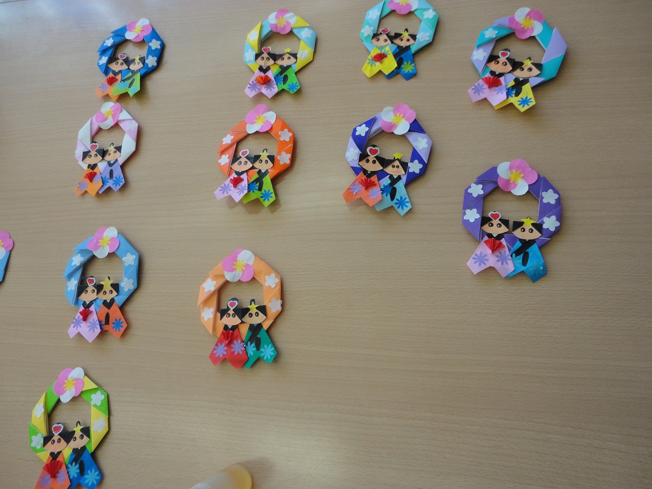 折り紙でひなまつりのリース飾り創作折り紙 カミキィ。