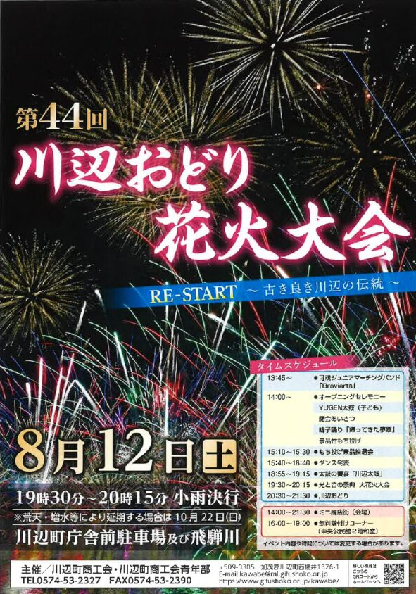 第44回川辺おどり・花火大会』タイムスケジュール岐阜県商工会連合会。