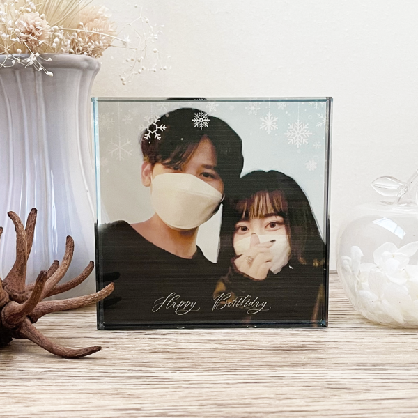 プレゼント お洒落ギフト 結婚記念日 誕生日 クリスマスプレゼント 誕生日 ガラスプレート 雪の結晶 パートナー サプライズ 写真入り クリア 机上モダン インテリア雑貨 記録 恋人 彼氏 彼女 プロポーズ 机 展示 冬季デザイン 永遠の愛 始まり スタート c01。