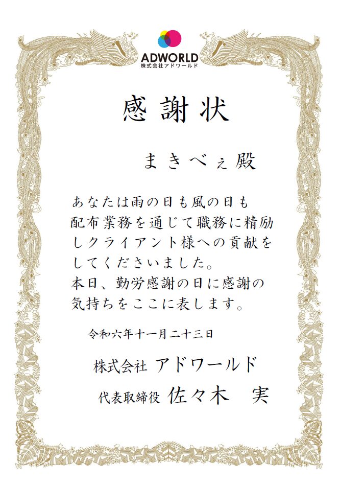 勤労感謝の日 嬉しいお手紙お頂きました♪ 公式 株式会社川口福祉サービス ラック 埼玉県川口市在宅介護サービスを提供。