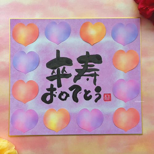 寄せ書き色紙 卒寿 喜寿 古希祝い 言葉、背景色 変更可能!写真を貼るスペースを空けて作成も可能です♪ 書道 筆文字アートnana* 通販15693637Creema クリーマ。