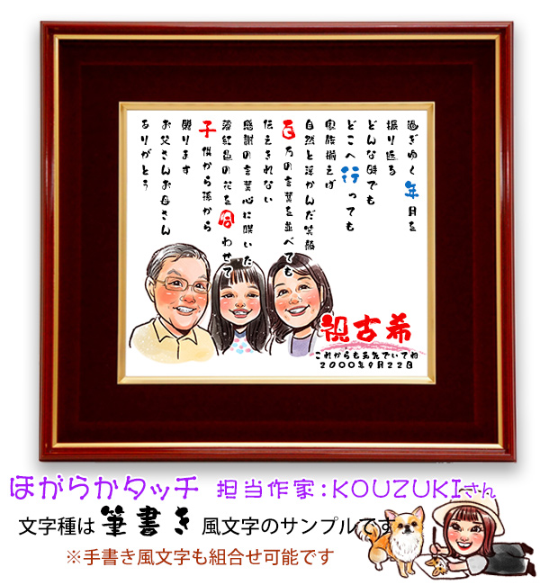 似顔絵ポエム<朱色色紙額>古希祝い本舗。