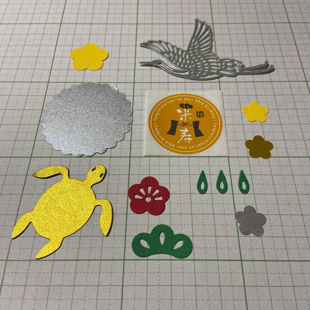 ▽ 米寿祝い用の 寄せ書き色紙✨ 寄せ書き用のシールが付いた バージョンの見本です😊 寄せ書き色紙は 直接色紙へ 書き込むことも出来るけど、シール付きだと色紙を まわす手間が省けるので オススメ✨ ご注文は minne、creemaなどの ネットショップより 承っ。