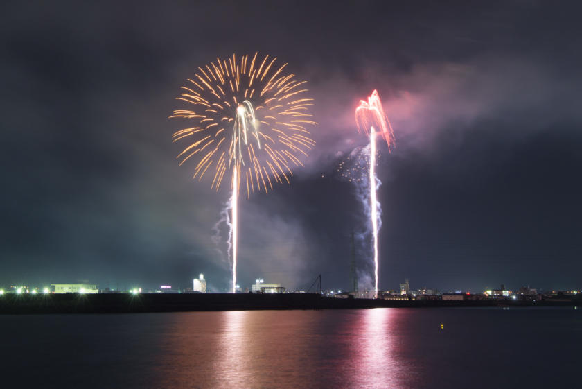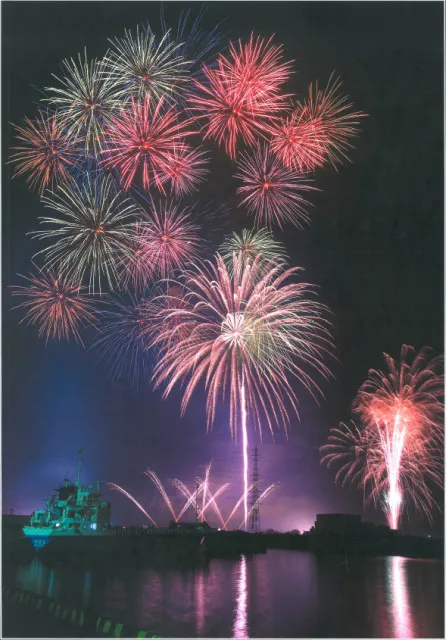 おかげん祭市民花火大会 高須海岸より 壬生川内港 愛媛県西条市三津屋西条異景 西条祭り・愛媛県西条市。