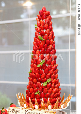 フレンチレストランでの披露宴のいちごのウエディングケーキの写真素材89810473- PIXTA。