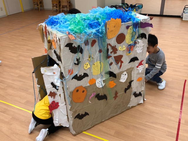 ハロウィン企画☆ダンボールでおばけやしき?めいろ?を作ろう!樋野口こども館。