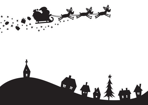クリスマス ソリにのったサンタクロース トナカイ シルエット 影絵 切り絵のイラスト素材59974022- PIXTA。