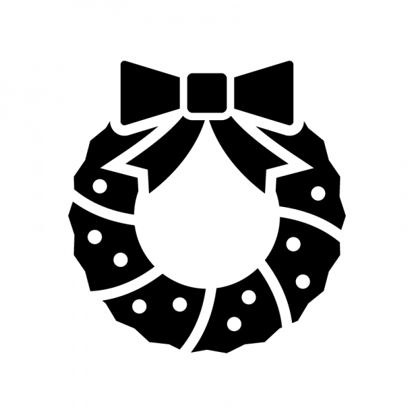リボンのクリスマスリースのシルエット02無料のAi・PNG白黒シルエットイラスト。