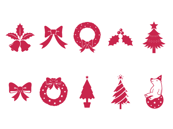 クリスマス サンタクロース トナカイ ツリー ベル 雪の結晶 のシルエットアイコン無料フリーイラスト素材 - フリーランスWebデザイナーのリアル。