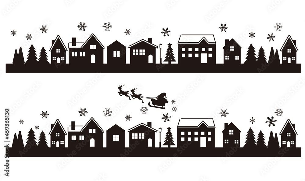 シンプルでかわいいシルエットの冬の街並みのベクターイラスト素材 ビル 家 クリスマス Stock VectorAdobe Stock。