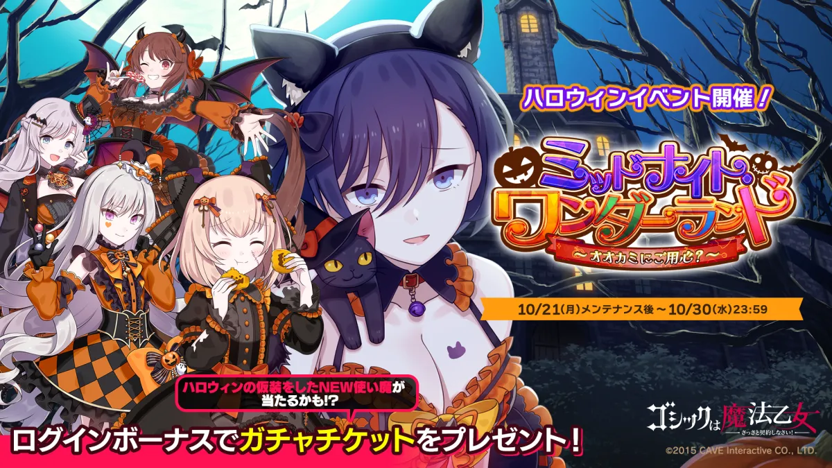 ゴシックは魔法乙女~さっさと契約しなさい!~』本日10月21日 月 より期間限定ハロウィンイベントを開催!毎日無料10連ガチャが引ける超豪華キャンペーンも!お知らせ株式会社ケイブ。
