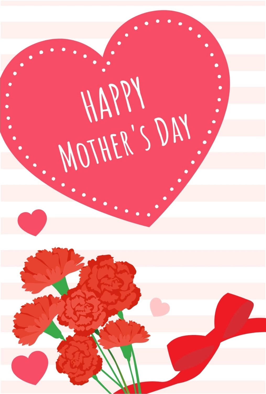母の日グリーティングカード ハートとカーネーションの無料メッセージカードテンプレート 5466 - デザインAC。