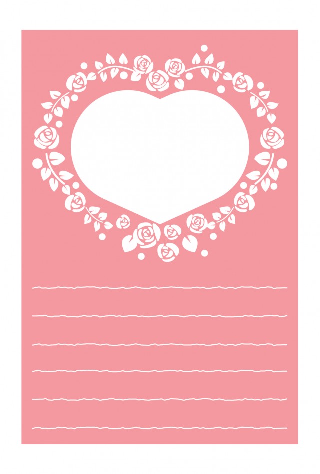 ハガキ ハートの形のバラフレームカード 赤無料の雛形・書式・テンプレート・書き方ひな形の知りたい。