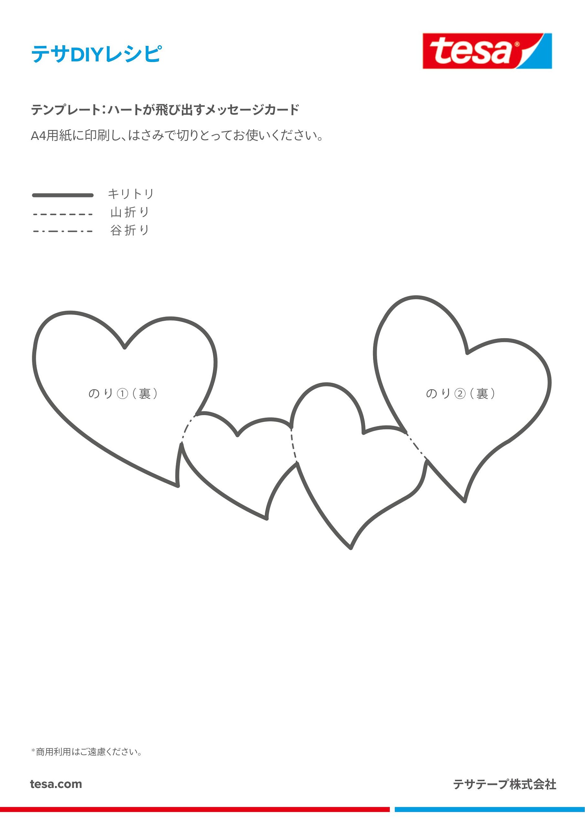 ハートが飛び出すメッセージカードの作り方 型紙ダウンロード- tesa。