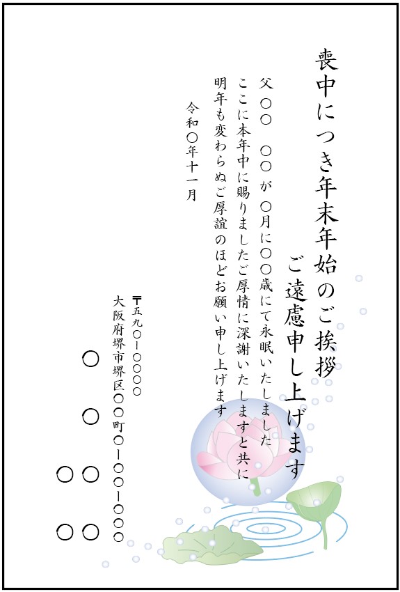 無料・喪中はがき 寒中見舞い テンプレート デザイン126 ハス- テンプレート55。