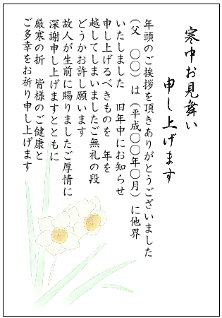 寒中見舞い 年賀欠礼 はがき 文例集挨拶状印刷・状状ネット。