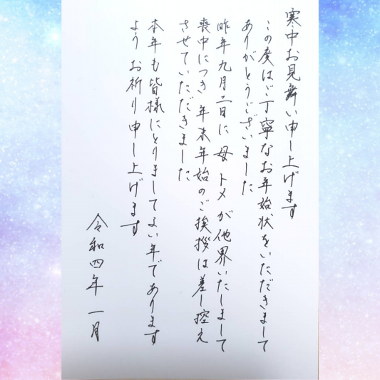 代筆サービス 喪中にもらった 年賀状への返事手紙代筆代行サービス・代筆屋手書き屋®。