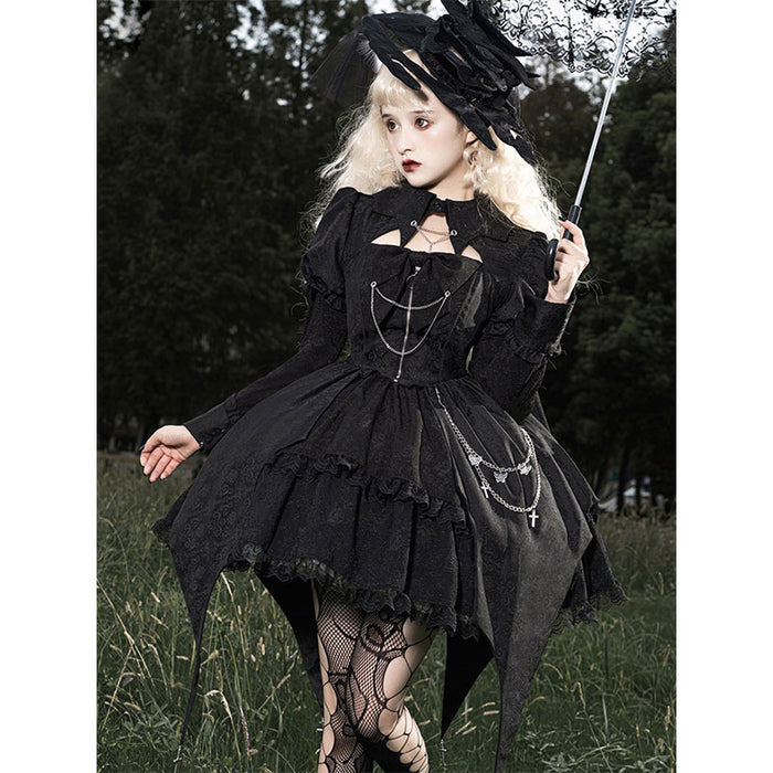 ハロウィン衣装 レディース ワンピース かわいい ブラックドレス 仮装舞踏会 吸血鬼 花嫁Vings ヴィングス。