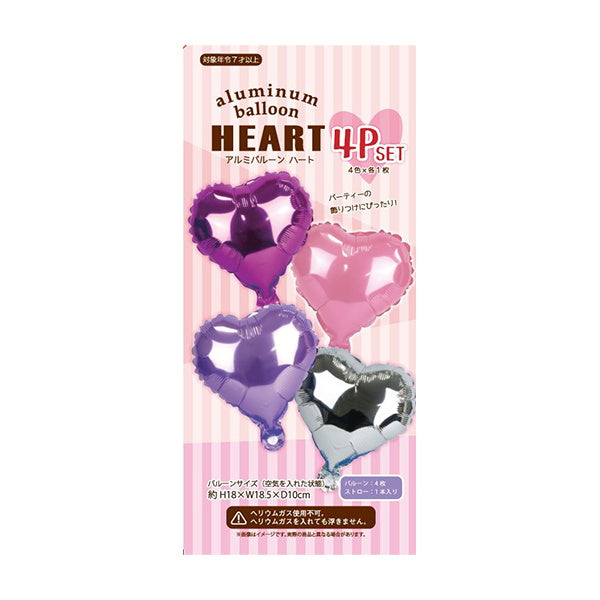 風船 ふうせん アルミバルーンハート 4P 338163。