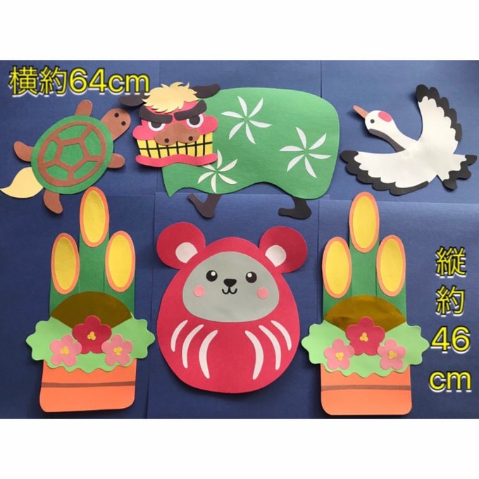 壁面飾り☆2020年 お正月 だるま 門松 獅子舞 鶴 亀 保育園 施設 店舗 - じゅにくろ'S GALLERYminne byGMOペパボ国内最大級のハンドメイド・手作り通販サイト。
