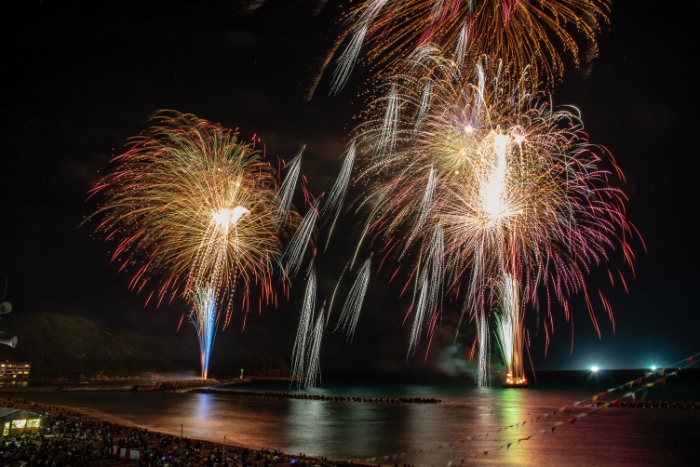 約1,000発の打ち上げ花火が夜の竹野浜を彩る♡ 竹野浜海水浴場で「第52回たけの海上花火大会」開催 豊岡市Kiss PRESS キッスプレス。