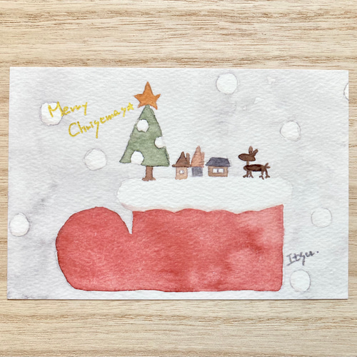 3枚セット「大きなクリスマスブーツ」北欧水彩画イラストポストカード クリスマスカード クリスマスプレゼント ポストカード marron125 通販10527273Creema クリーマ。
