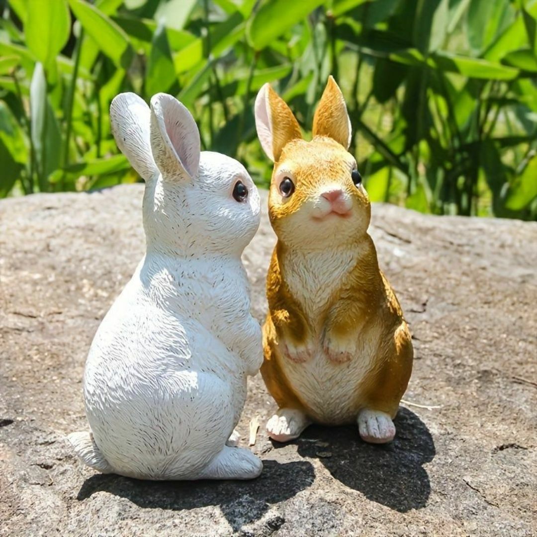 2個セット かわいいウサギのオブジェ イースターバニー ガーデンレジンクラフト。