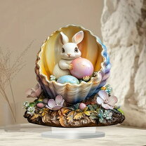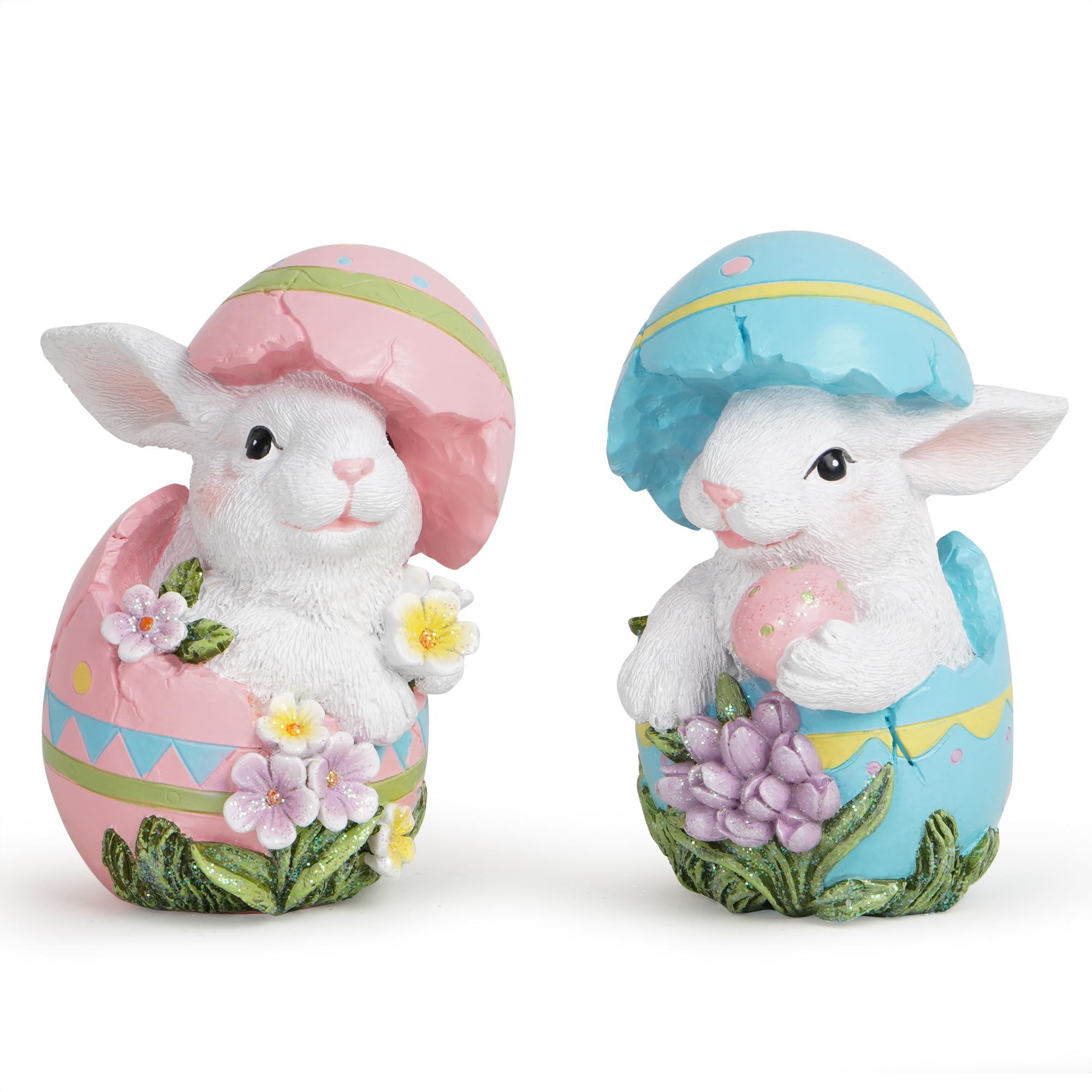 陶器 春の祝祭置物イースターエッグイースターバニーうさぎ。