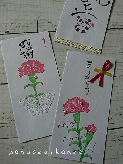 母の日のポチ袋♪100均のこんなシールをちょこっと貼る♪ : ぽんぽこの絵手紙、字手紙、消しゴムはんこ。
