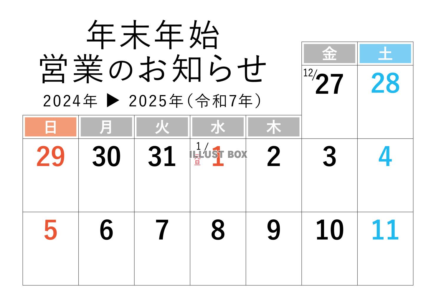 2024年→2025年 年末年始休みカレンダー バナー素材セット273155402- イメージマート。
