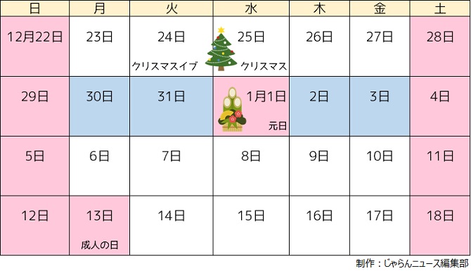2025〜2026 年末年始カレンダー 休暇はいつから?&何連休?いこーよニュース。