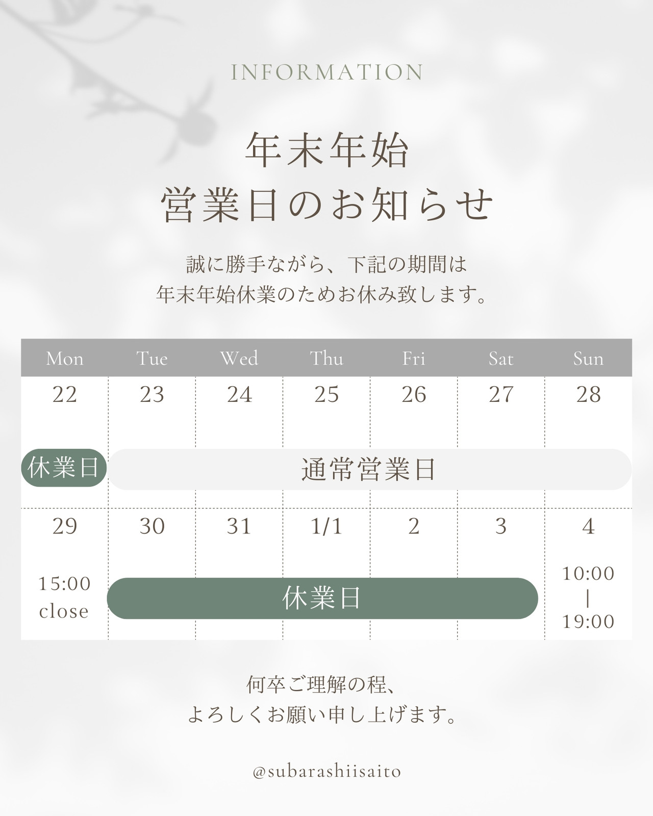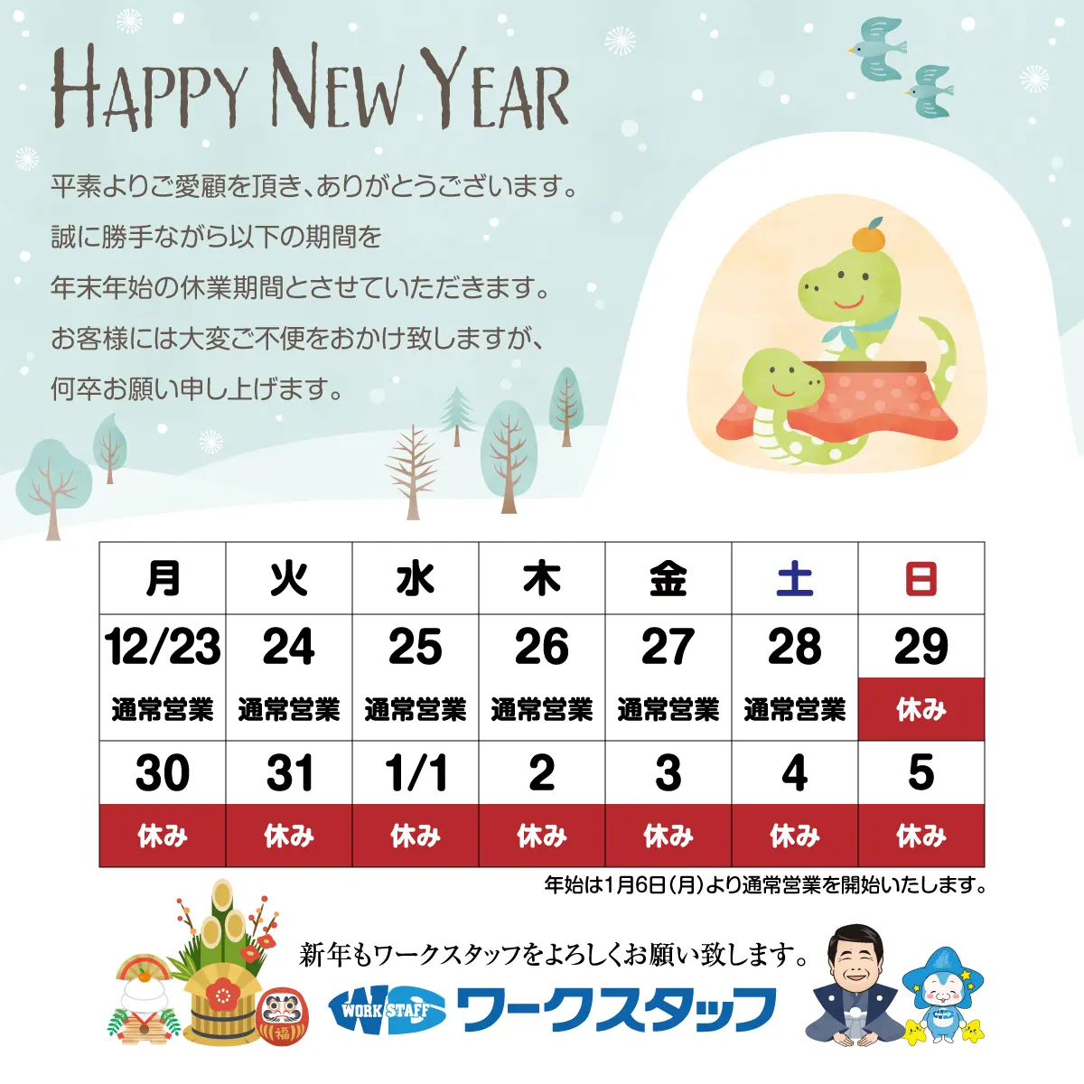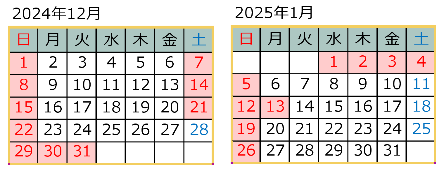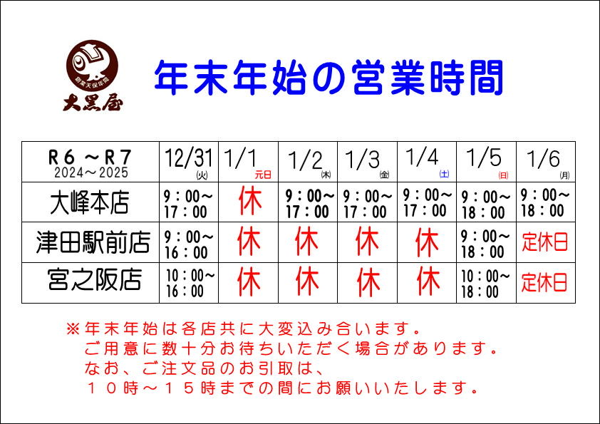 年末年始休業のお知らせ 2024年-2025年。